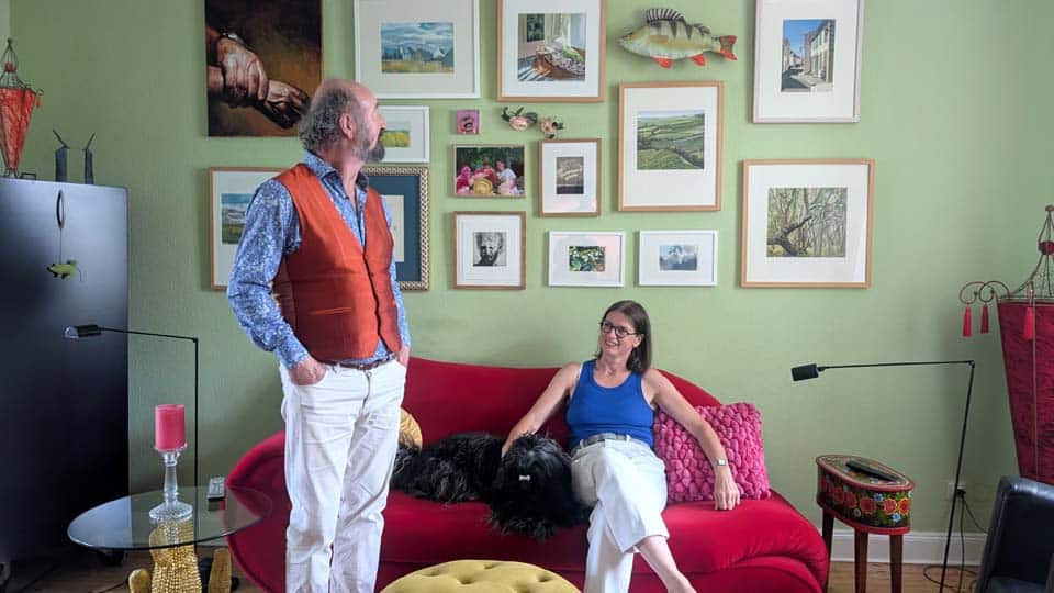 Täuscht das, oder steht da oben neben dem Schornstein ein Schwein? Tatsächlich. Ein goldenes. Von unten betrachtet wirkt es zierlich, dabei ist es anderthalb Meter groß und ziemlich schwer, wie Hausherr Dietmar Gross erklärt. Für die Wellesweilerer gehört das Edelschwein seit drei Jahren zum Dorfbild. Damals zogen Susanne und Dietmar Gross aus Rheinhessen hier in die geographische Mitte zwischen Bexbach mit seinem dominanten Steinkohlekraftwerk und Neunkirchen mit seiner Stahlvergangenheit. In einem alten Prämienhaus schufen sie ihre eigene Welt zwischen Tradition und künstlerischer Freiheit.